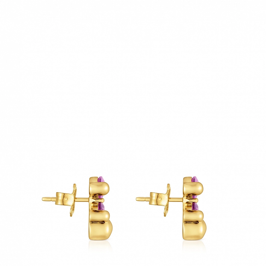 Сережки TOUS Color Bear LGG зі срібла 925 проби з покриттям Vermeil та сапфіром бузкового кольору у формі ведмедика овального огранювання, вирощеним у лабораторії. Розмір сережок: 13 мм. Примітка: Виріб створено з використанням лабораторно вирощених дорогоцінних каменів.