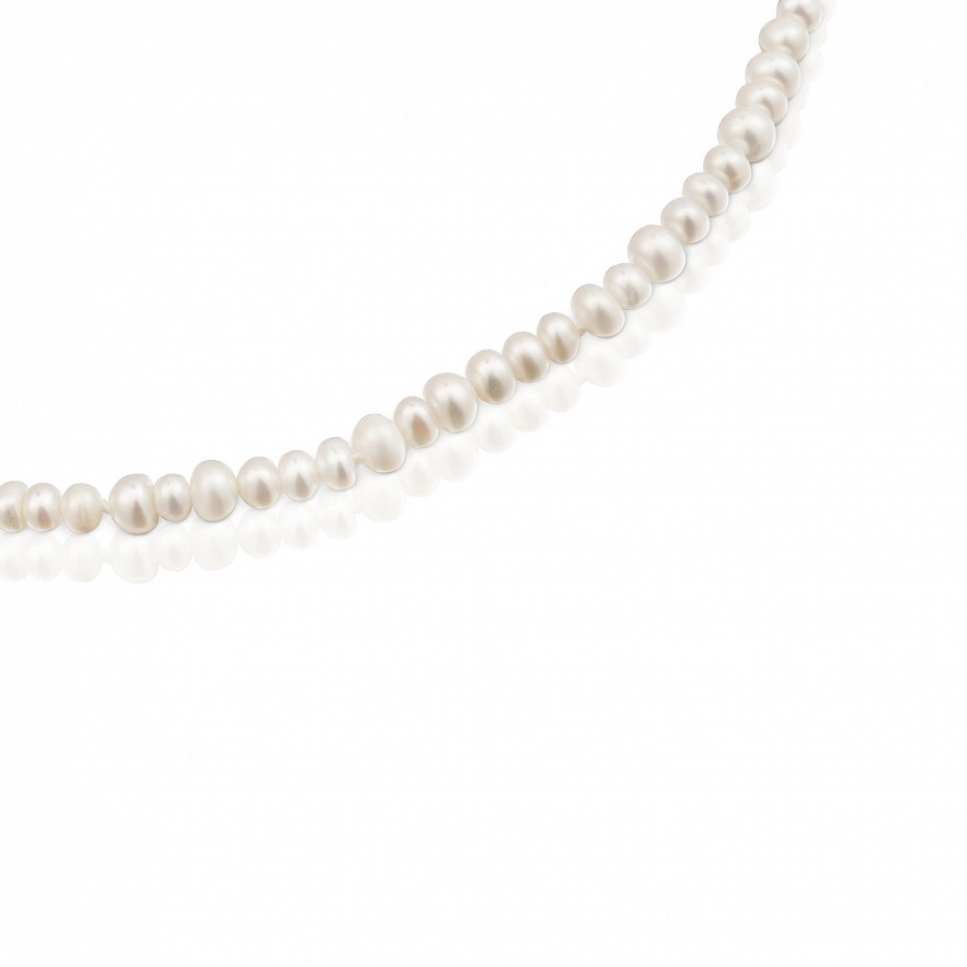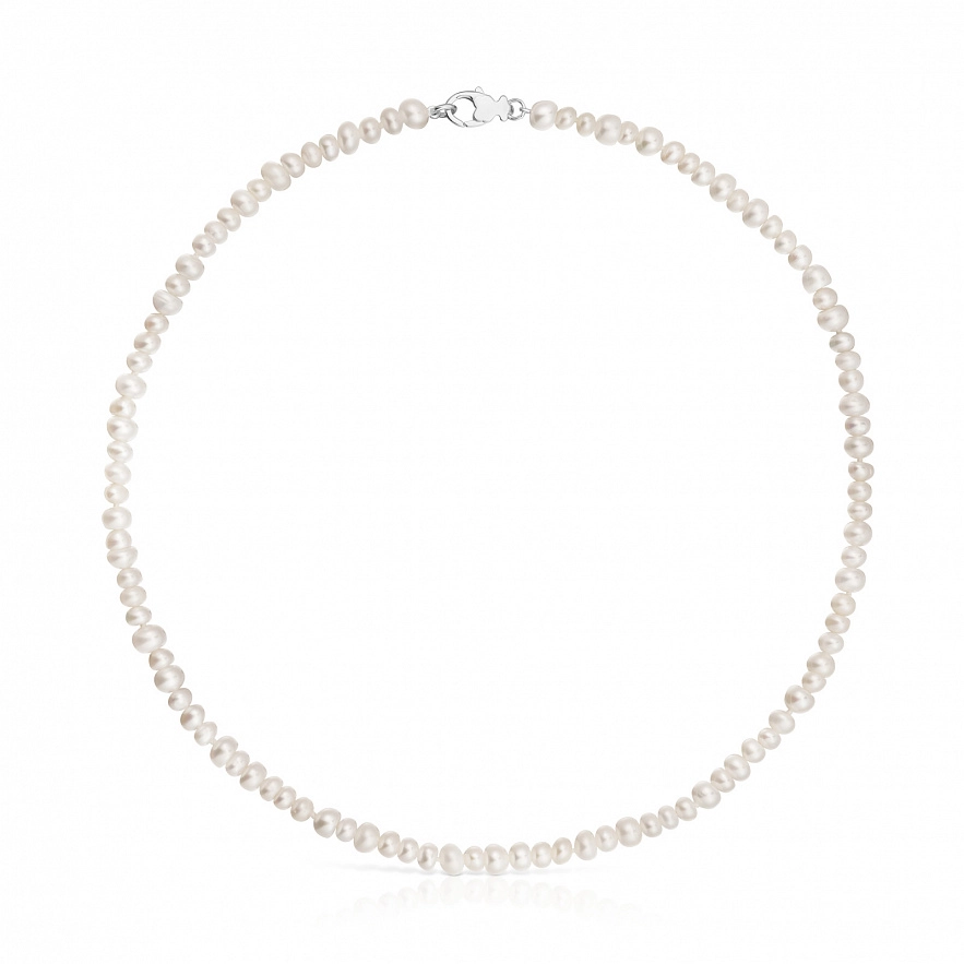 Намисто TOUS Basic зі срібла 925 проби з культивованими прісноводними перлинами. Розмір культивованих перлин: 4,5-6 мм. Довжина намиста: 45 см. Застібка-лобстер з шармом ведмедика.