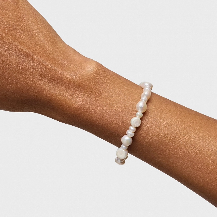 Браслет TOUS Basic зі срібла 925 проби та культивованих прісноводних перлин різного розміру. Розмір культивованих перлин: від 4,5 до 10 мм. Довжина браслета: 18 см. Застібка у вигляді лобстера з ведмедиком.