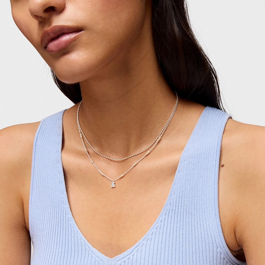 Намисто TOUS Sweet Dolls зі срібла 925 проби з культивованими прісноводними перлинами та ведмедиком. Розмір ведмедика: 6 мм. Розмір культивованих перлин: 2 мм. Довжина намиста: 42 см. Застібка-лобстер.