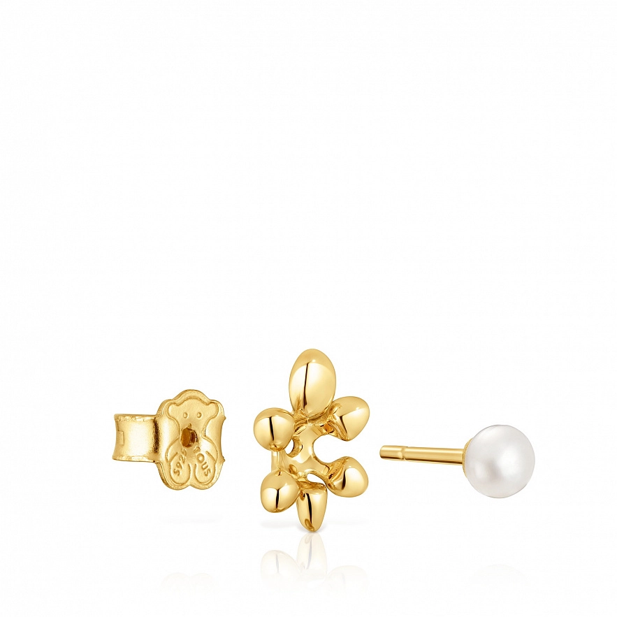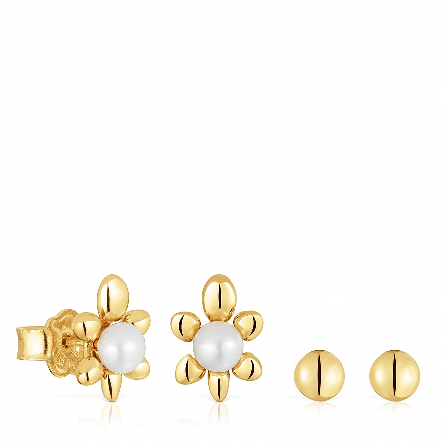 Набір сережок TOUS Virtual Garden зі срібла 925 проби з покриттям Vermeil та культивованими перлами. Основа сережки у формі черепахи без застібки; взаємозамінна між двома різновидами сережок. Одна сережка у формі кульки з 18-каратним золотим покриттям,, а інша з культивованою прісноводною перлиною. Розмір культивованих перлин: 3.2 мм. Розмір шарму: 3,2 мм.