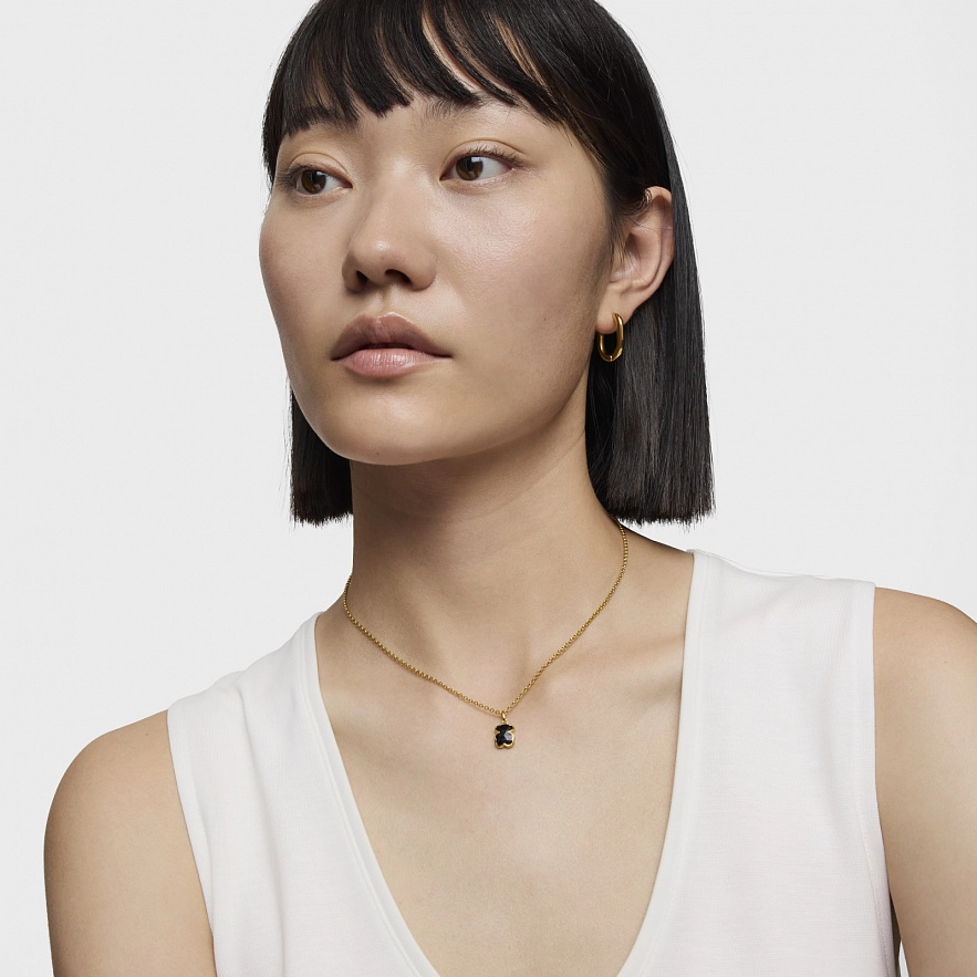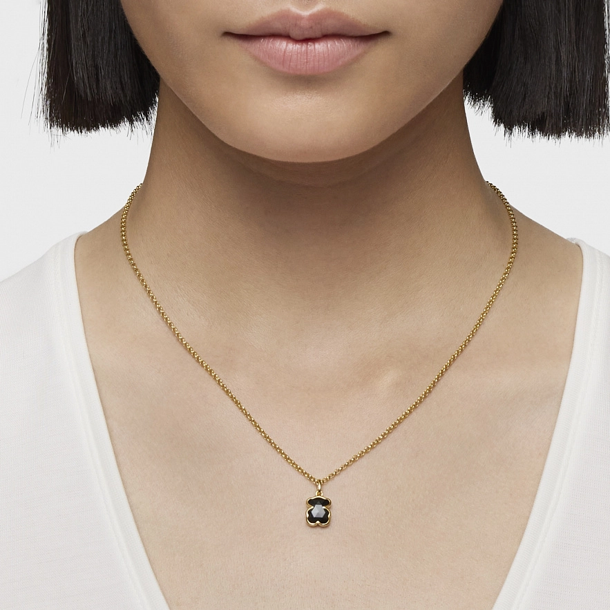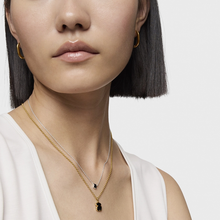 Намисто TOUS Icon Color зі срібла 925 проби з покриттям Vermeil та мотивом ведмедика з огранованого оніксу. Розмір ведмедика: 10 мм. Довжина намиста: 45 см. Застібка лобстер.