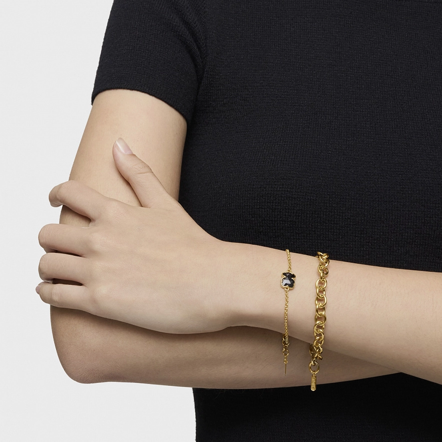 Браслет TOUS Icon Color зі срібла 925 проби з покриттям Vermeil та мотивом ведмедя з огранованого оніксу. Розмір ведмедика: 10 мм. Довжина браслета: 17,5 см. Застібка-лобстер.