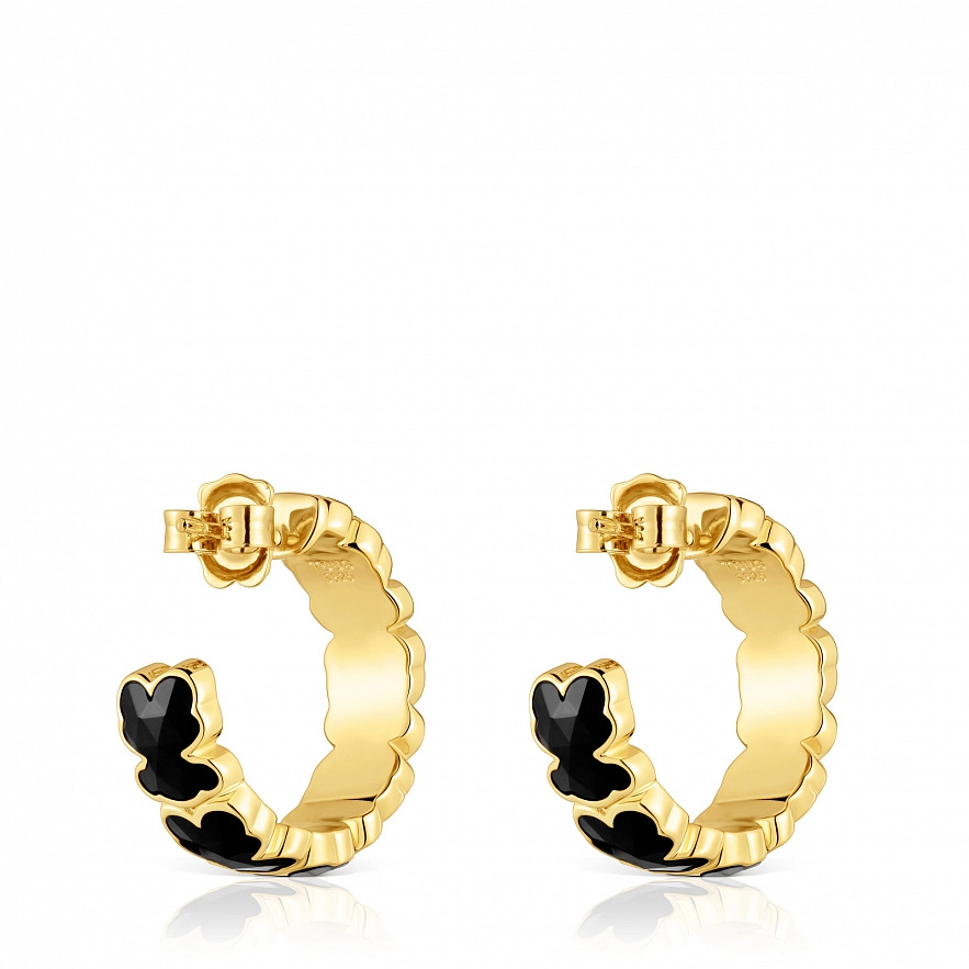 Сережки-кільця TOUS Icon Color зі срібла 925 проби з покриттям Vermeil та з мотивами ведмедиків з огранованого оніксу. Розмір шарму ведмедика: 8 мм. Розмір сережок: 18 мм.