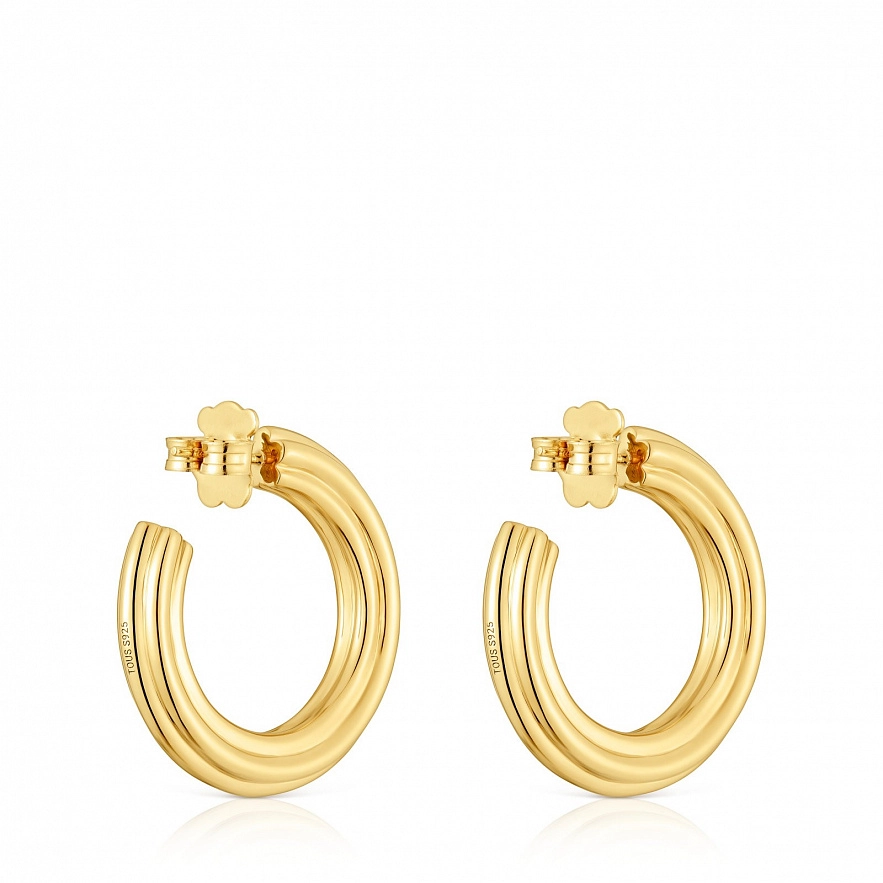 Сережки-кільця TOUS 1950 зі срібла 925 проби з покриттям Vermeil , з внутрішнім мотивом у вигляді квітки. Розмір сережок: 30 мм.