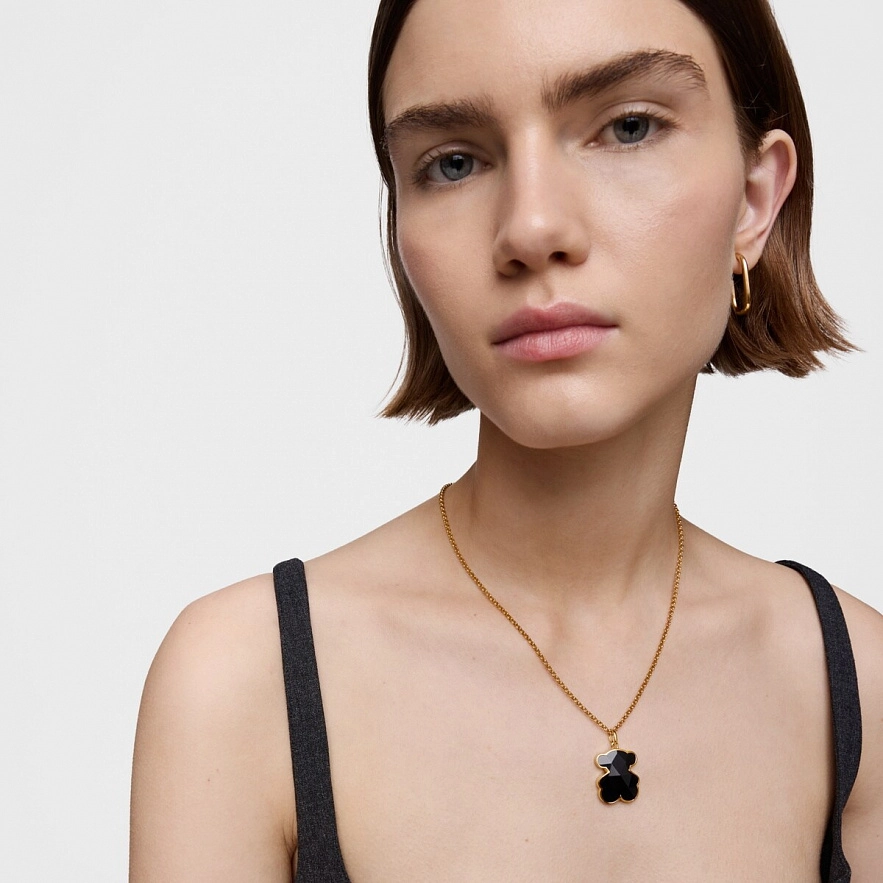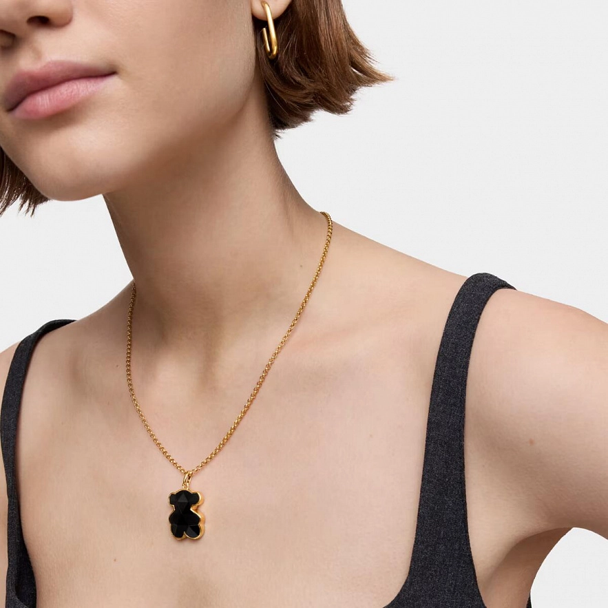 Кулон TOUS Icon Color зі срібла 925 проби з покриттям Vermeil та мотивом ведмедика в огранованому оніксі. Розмір ведмедика: 24 мм.
