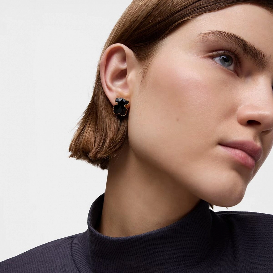 Сережки TOUS Icon Color зі срібла 925 проби з покриттям Vermeil , з огранованим оніксом у формі ведмедика. Розмір сережок: 16 мм.