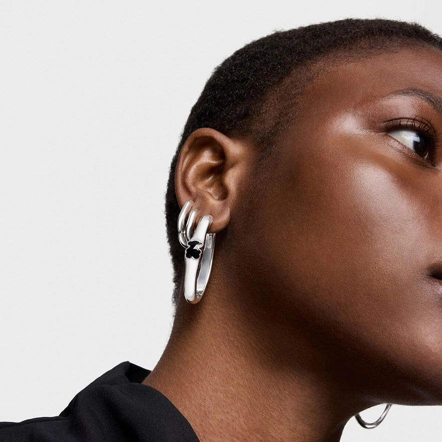 Сережки TOUS Icon Color зі срібла 925 проби та з огранованим оніксом у формі ведмедика. Розмір ведмедика: 10 мм. Розмір сережок: 38 х 17,5 мм.