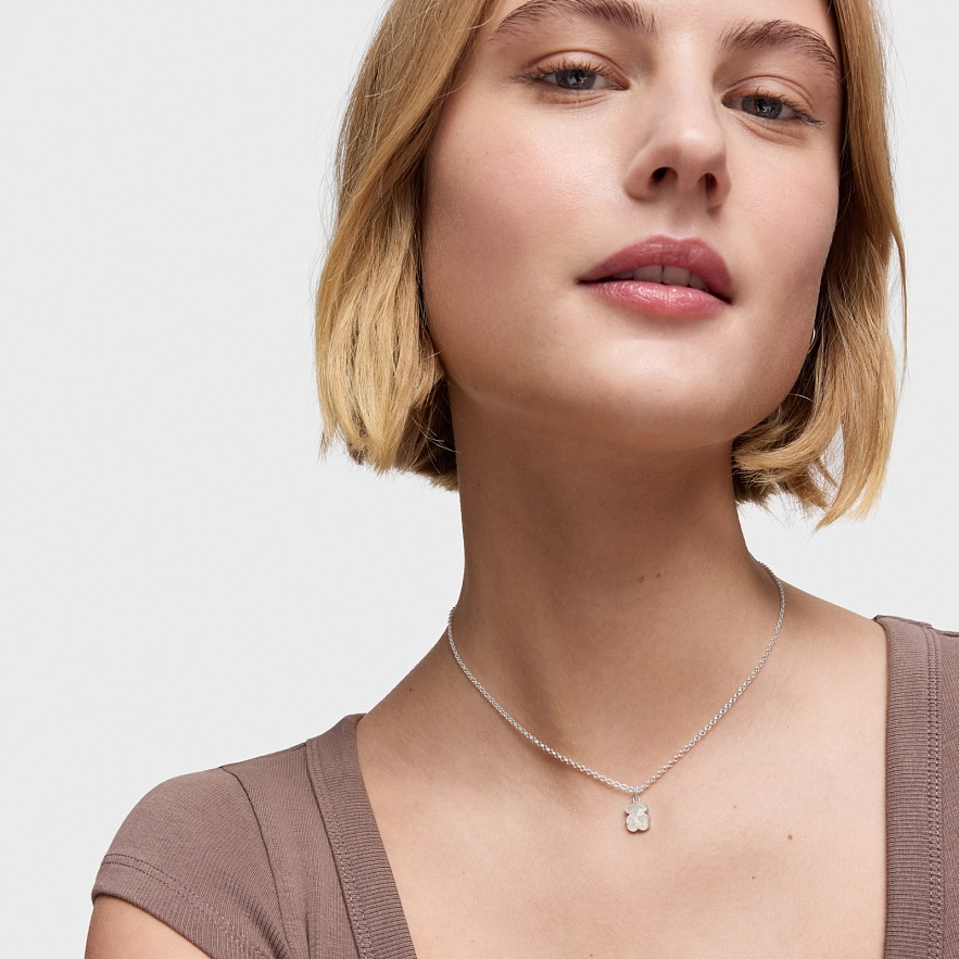 Намисто TOUS Icon Color зі срібла 925 проби з мотивом ведмедика з гранованого перламутру. Розмір ведмедика: 10 мм. Довжина намиста: 45 см. Застібка лобстер.