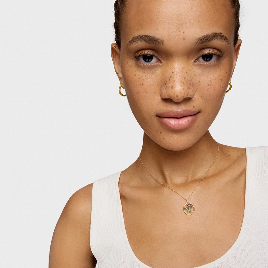 Кулон TOUS Daisy з жовтого золота 18 карат, огранований круглий цитрин, оброблений зелений халцедон грушоподібної огранки, огранований круглий іоліт та діаманти 0,02 карат. Якість діамантів: H / SI. Розмір кулона: 14 мм. Цей товар не включає ланцюжок.