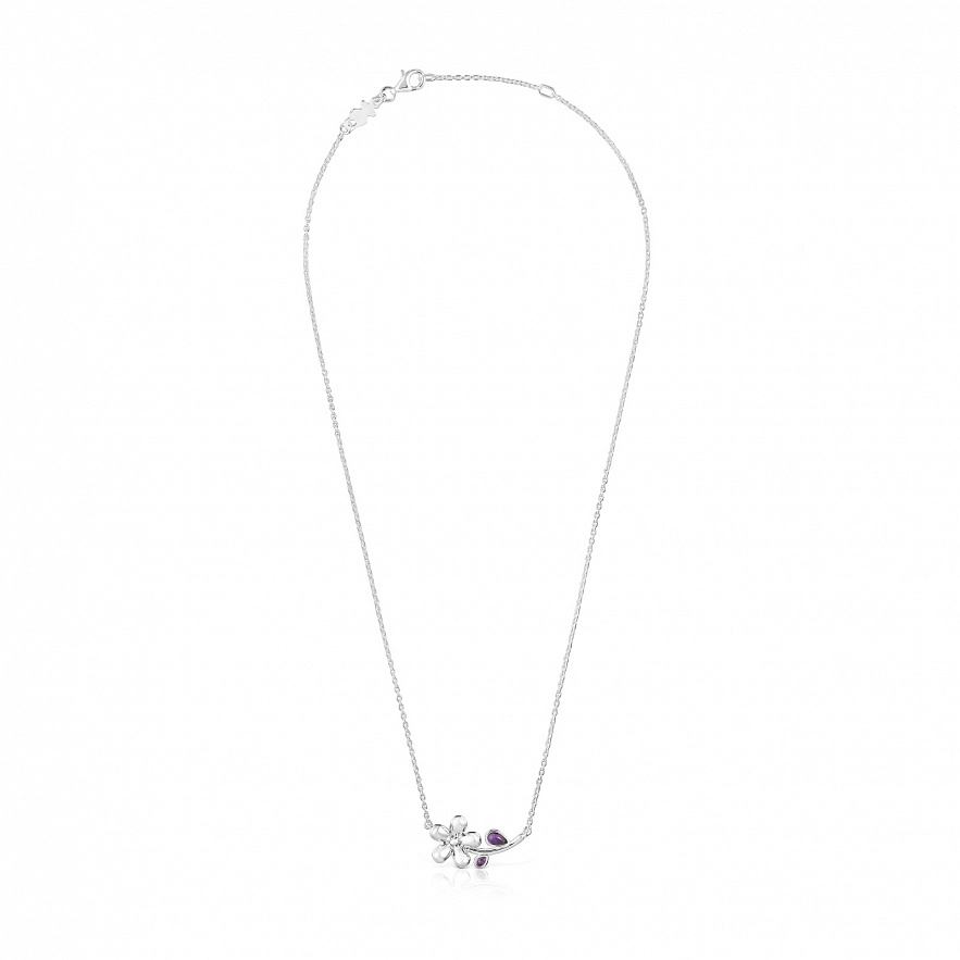 Намисто TOUS Daisy зі срібла 925 проби з квітковим мотивом та аметистом грушоподібної огранки. Розмір мотиву: 12 мм. Довжина намиста: 45 см. Застібка-метелик.