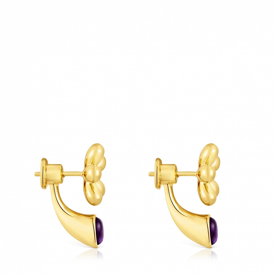 Сережки TOUS Daisy зі срібла 925 проби з покриттям Vermeil з квітковим мотивом і аметистом грушоподібної огранки; можна носити разом або окремо. Розмір сережок: 18 мм.