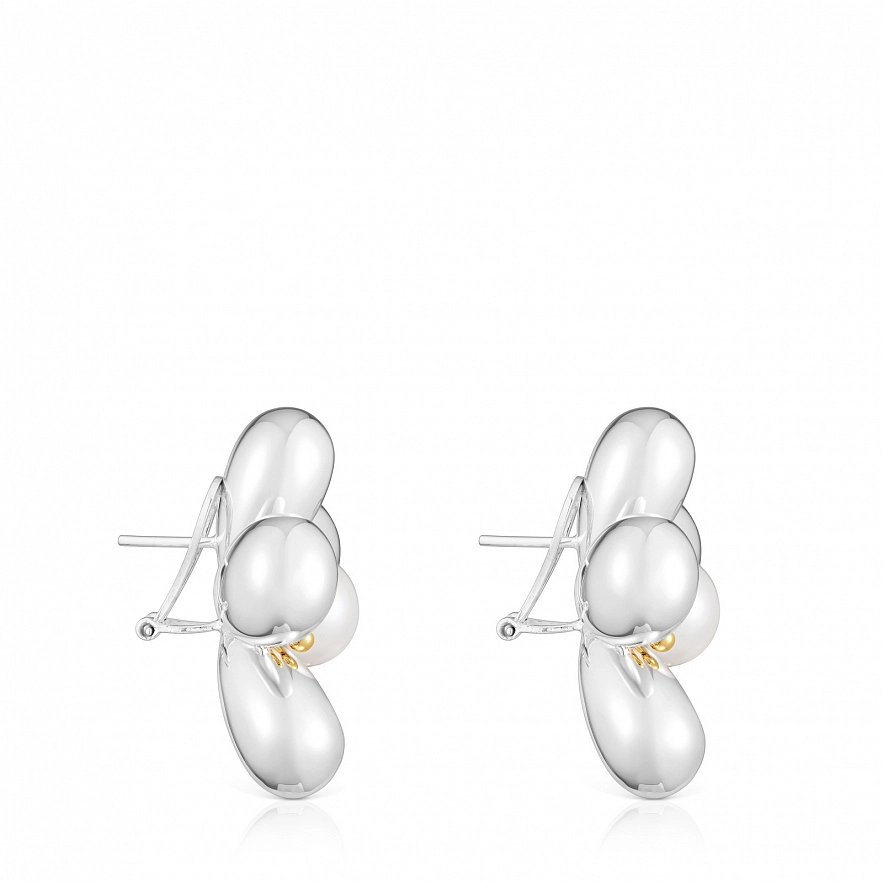 Сережки TOUS Daisy зі срібла 925 проби з покриттям Vermeil з квітковим мотивом та культивованими прісноводними перлинами. Розмір культивованої перлини: 10,5-11 мм. Розмір сережки: 36 мм.