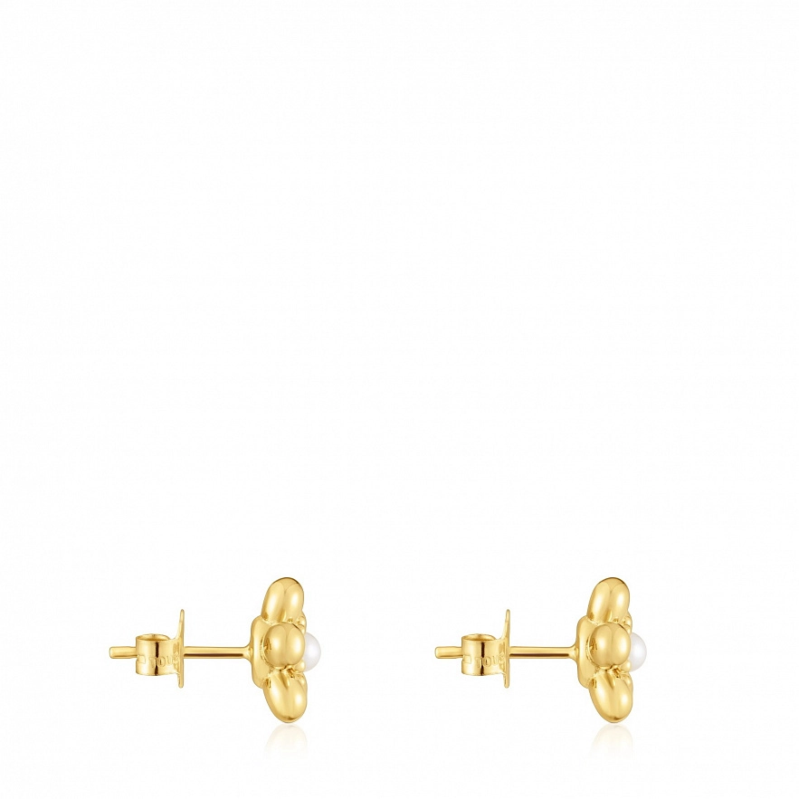 Сережки TOUS Daisy з жовтого золота 18 карат, квітковий мотив та культивовані прісноводні перлини. Розмір сережок: 10 мм.