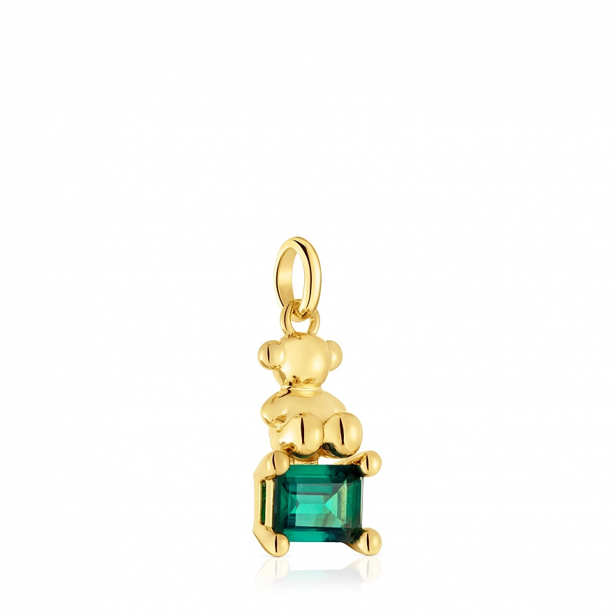 Кулон TOUS Bold Bear LGG зі срібла 925 проби з покриттям Vermeil з мотивом ведмедя та з огранованим синтетичним зеленим смарагдом овального огранювання. Розмір мотиву: 17 мм. Примітка: Виріб створений з використанням лабораторно вирощених дорогоцінних каменів.