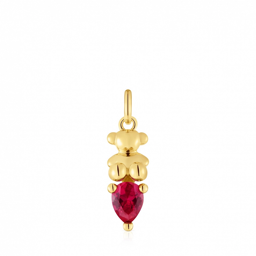 Кулон TOUS Bold Bear LGG зі срібла 925 проби з покриттям Vermeil та мотивом ведмедя та з огранованим синтетичним рубіном грушоподібного ограновування. Розмір мотиву: 19 мм. Примітка: Виріб створений з використанням лабораторно вирощених дорогоцінних каменів.