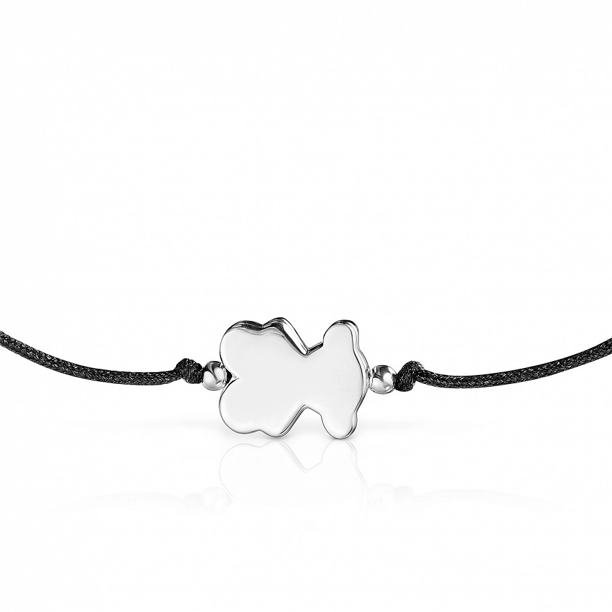 Браслет TOUS Sweet Dolls зі срібла 925 проби з ведмедиком та чорним нейлоном. Розмір ведмедика: 10 мм. Довжина браслета: 20 см. Застібка-слайдер.