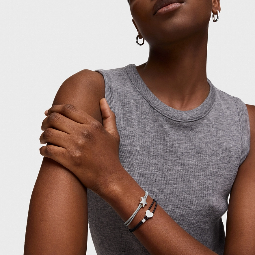 Браслет TOUS Sweet Dolls еластичний, чорного кольору з сердечком зі срібла 925 проби. Розмір шарму: 11 х 12 мм. Довжина браслета: 17 см.