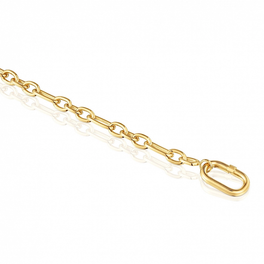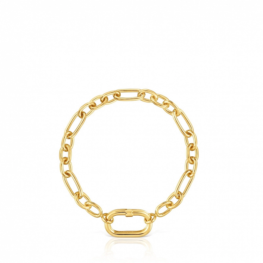 Браслет TOUS Hold Oval зі срібла 925 проби з покриттям Vermeil та кільцем-фіксатором. Розмір каблучки: 20 мм. Довжина браслета: 18 см. Застібка на кільці. Примітка: персоналізуйте цей дизайн за допомогою кулонів, брелоків або каблучок.