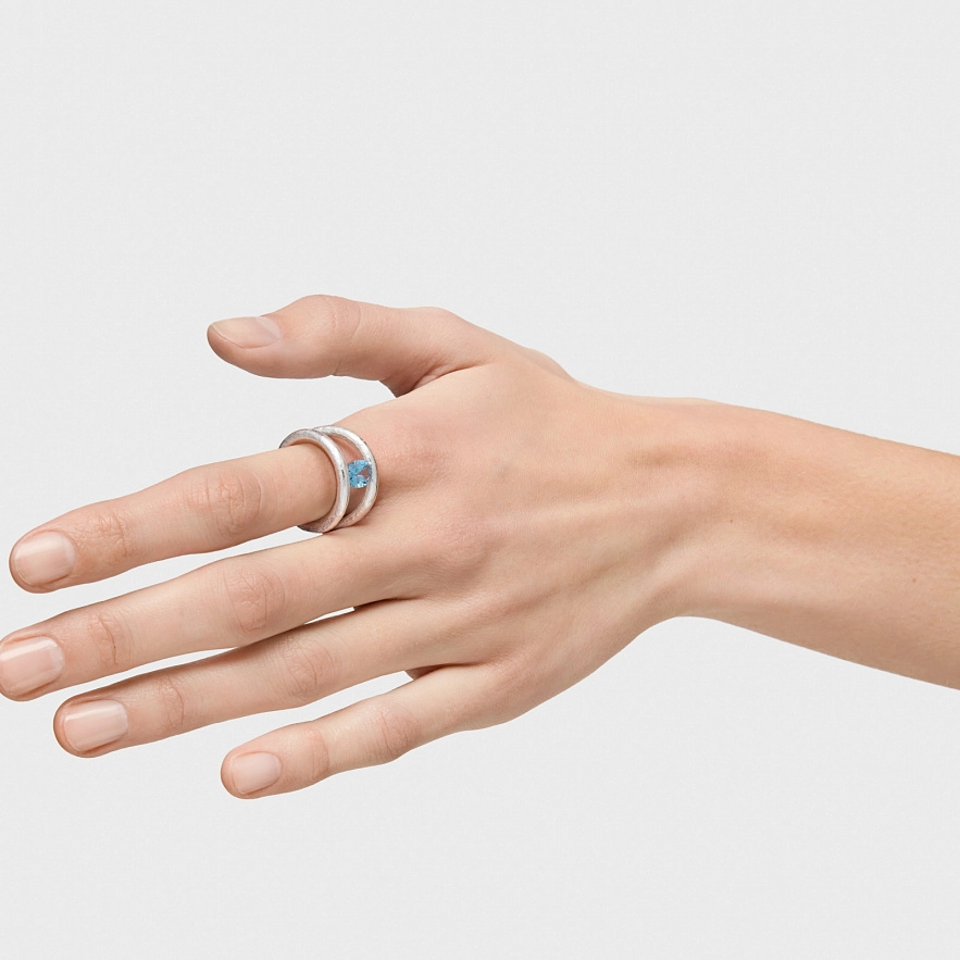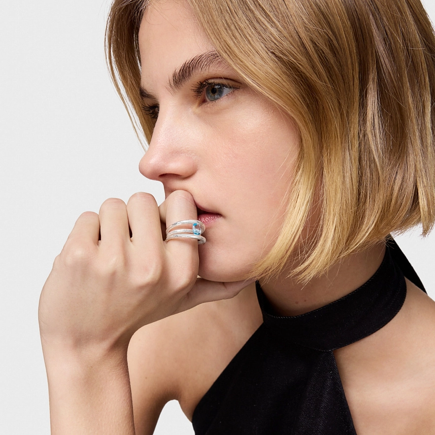 Каблучка TOUS Duna зі срібла 925 проби з огранованим овальним синім топазом. Ширина каблучки: 12,7 мм.
