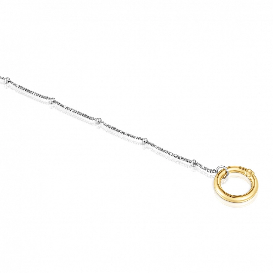 Браслет TOUS Hold з жовтого золота 750 проби з кільцем і сталевим ланцюгом з деталями. Розмір кільця: 12 мм. Довжина браслета: 17,5 см. Застібка на кільце.