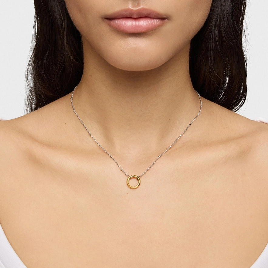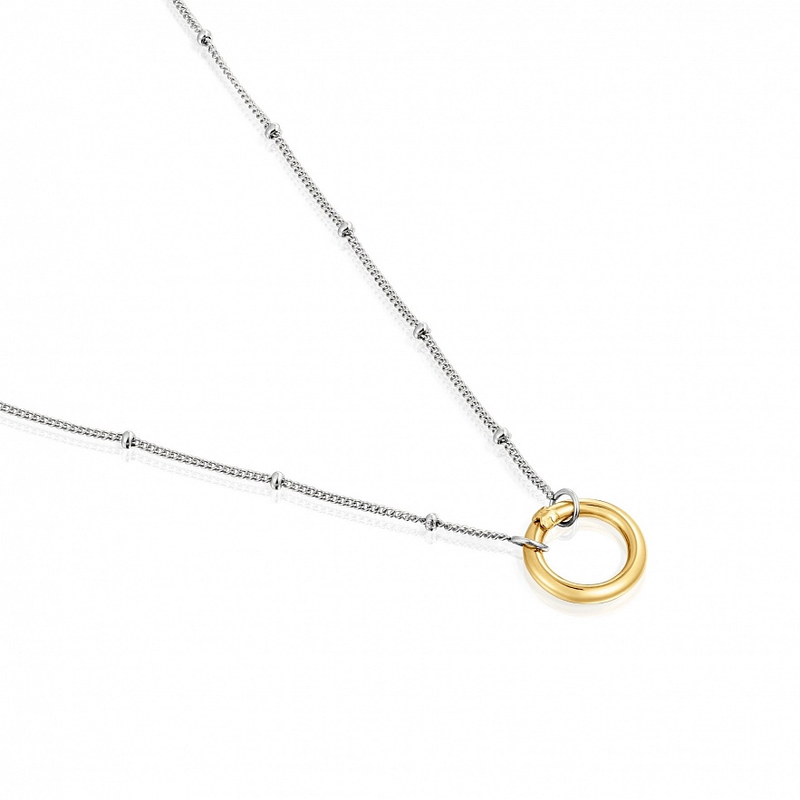 Намисто TOUS Hold з жовтого золота 750 проби з кільцем і сталевим ланцюгом з деталями. Розмір кільця: 12 мм. Довжина кольє: 42,5 см. Застібка на кільці. Примітка: Персоналізуйте цей дизайн за допомогою кулонів, брелоків або каблучок.
