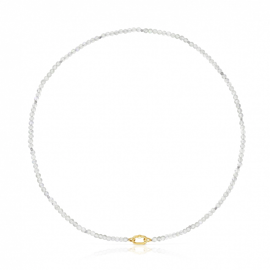 Намисто TOUS Hold Oval з жовтого золота 18 карат з огранованим круглим лабрадоритом. Розмір дорогоцінних каменів: 3 мм. Розмір каблучки: 10 мм. Довжина намиста: 42 см. Застібка каблучки TOUS Hold Oval.