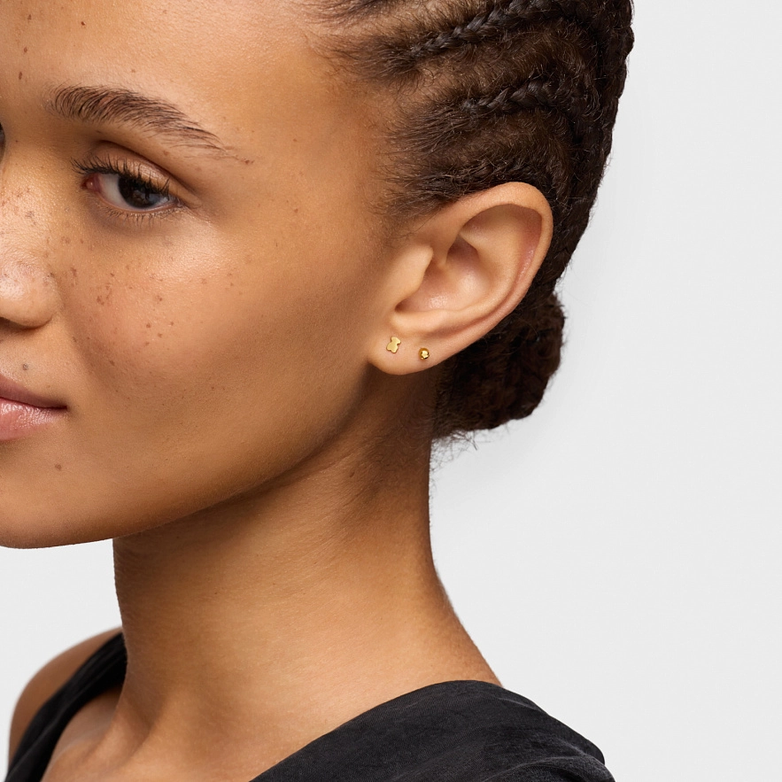 Сережки TOUS Basics з 14-каратного жовтого золота з мотивом ведмедика. Розмір мотиву: 4 мм. Застібка-гвинт.