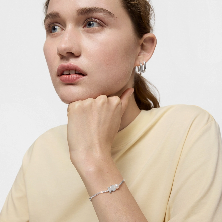 Браслет TOUS Sweet Dolls зі срібла 925 проби з ведмедиком та культивованою прісноводною перлиною. Розмір ведмедика: 10 мм. Розмір культивованої перлини: 6 мм. Довжина браслета: 17,5 см. Застібка лобстер.