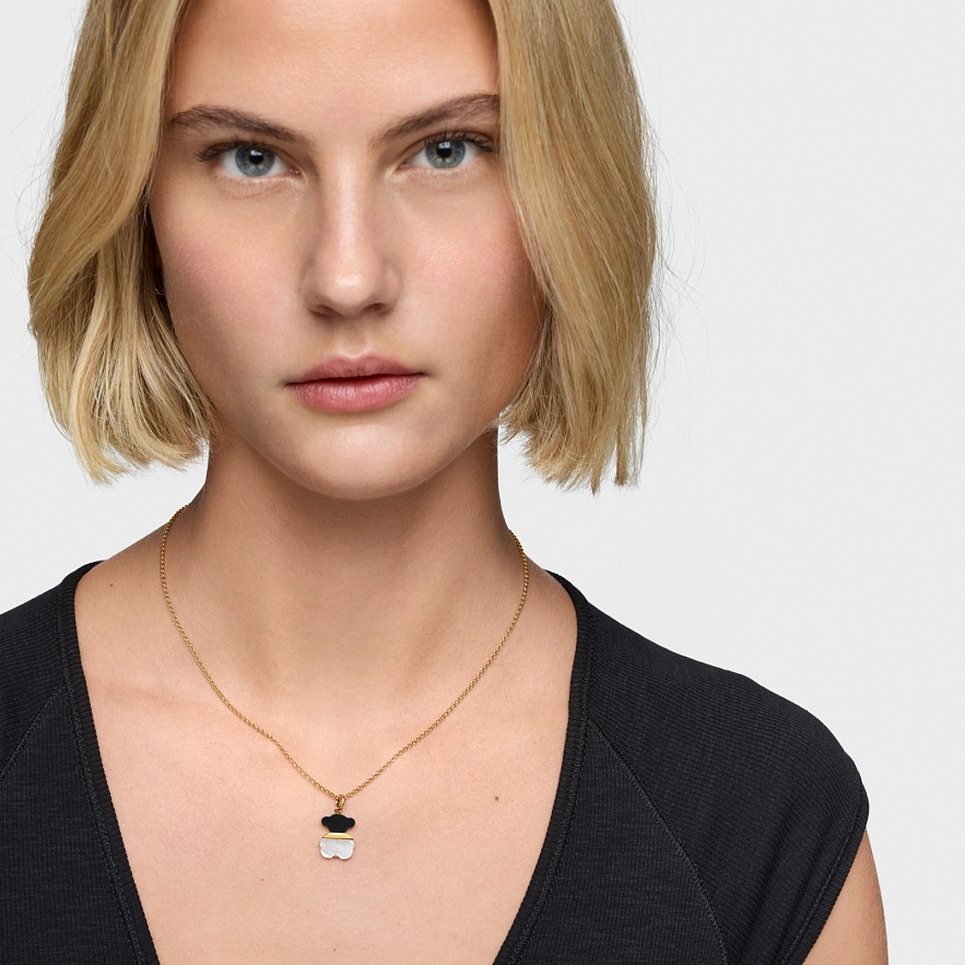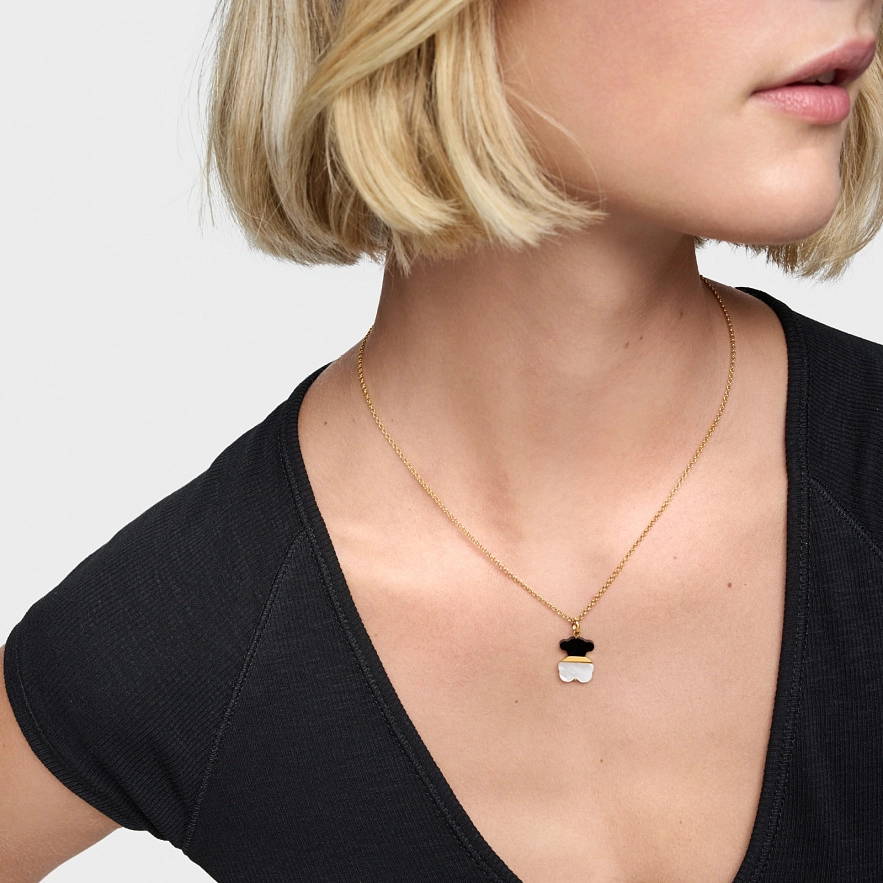 Кулон TOUS Sweet Dolls зі срібла 925 проби з покриттям Vermeil , з перламутром та оніксом у формі ведмедика. Розмір підвіски: 16 мм. Цей виріб не включає в себе ланцюжок.