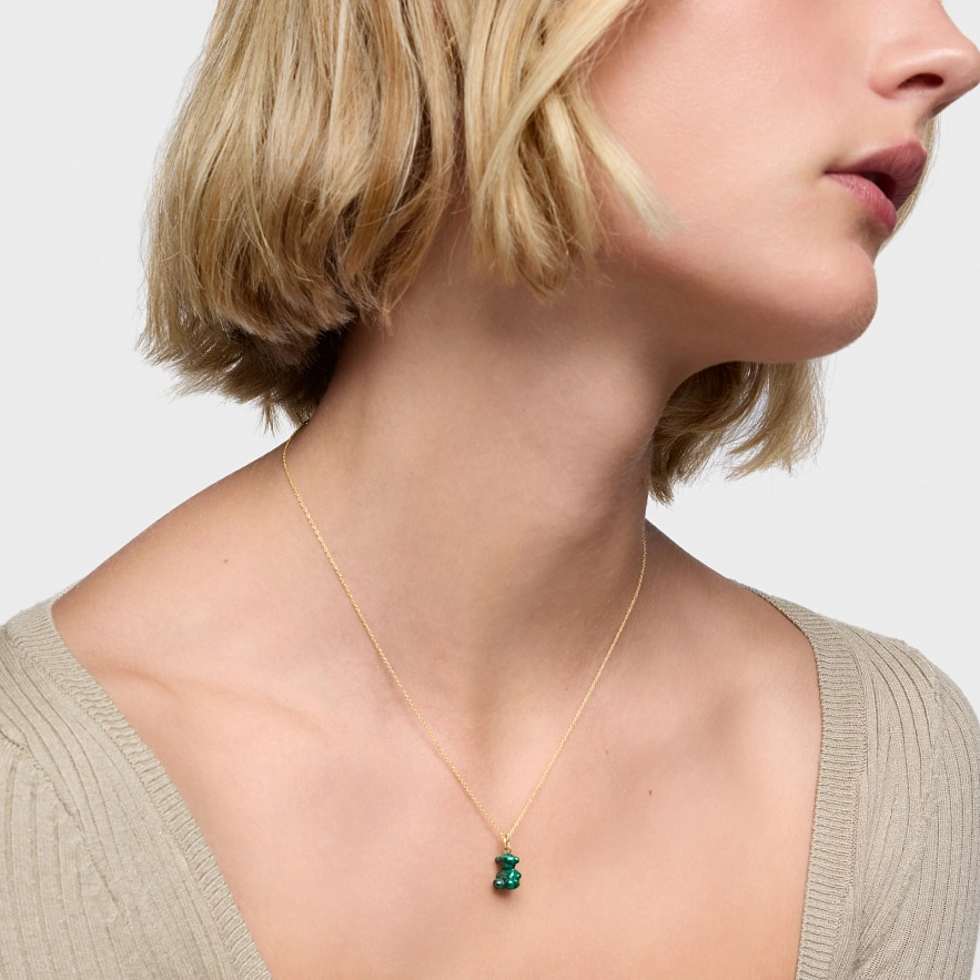 Кулон TOUS Bold Bear з жовтого золота 14 карат з малахітом у формі ведмедика. Розмір підвіски: 11 мм. Цей виріб не включає в себе ланцюжок.