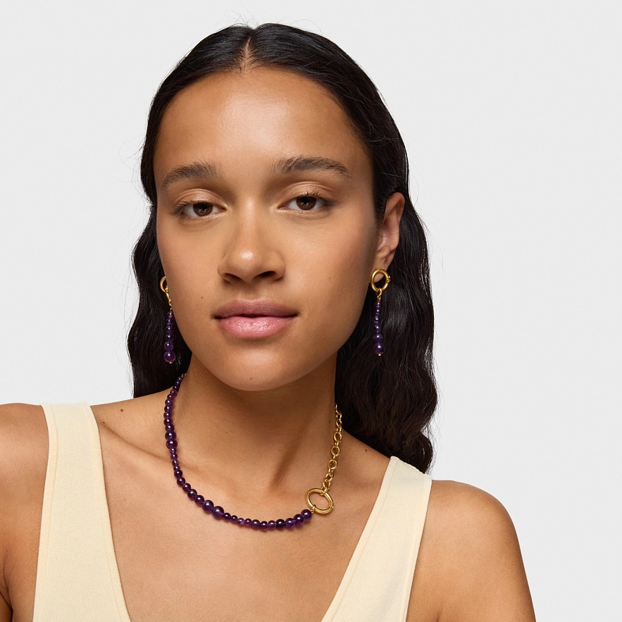 Намисто TOUS Hold зі срібла 925 проби з покриттям Vermeil та огранованим круглим аметистом. Довжина намиста: 45 см. Розмір кільця: 20 мм. Застібка-кільце TOUS Hold. Виріб виготовлений із срібла 925 проби з 18-23-каратним золотим покриттям товщиною 3 мікрон. Така якість гарантує більшу довговічність прикраси.