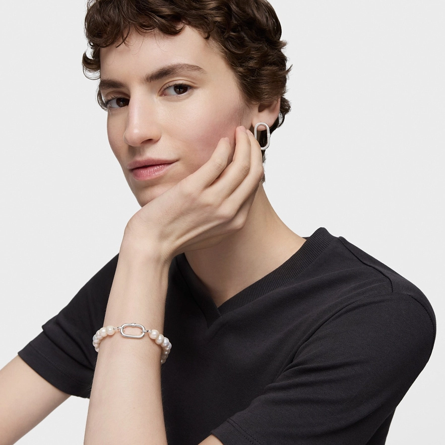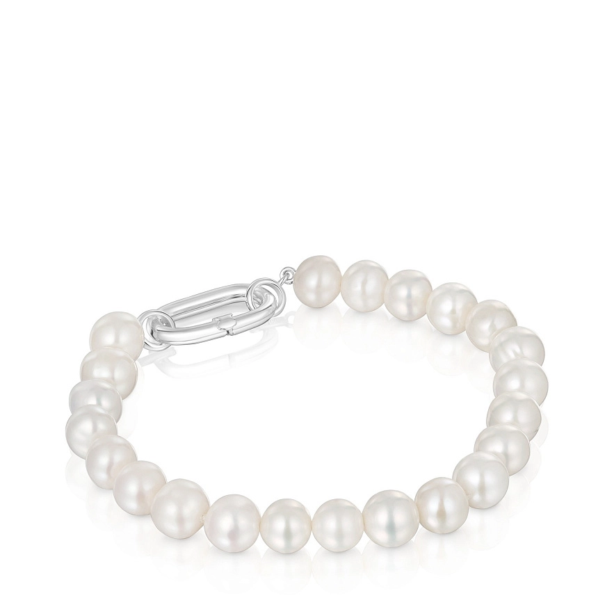 Браслет TOUS Hold Oval з кільцем зі срібла 925 проби та культивованими прісноводними перлинами. Розмір кільця: 20 мм. Довжина браслета: 19,5 см. Застібка у вигляді кільця. Примітка: персоналізуйте цей дизайн за допомогою кулонів, брелоків або каблучок.
