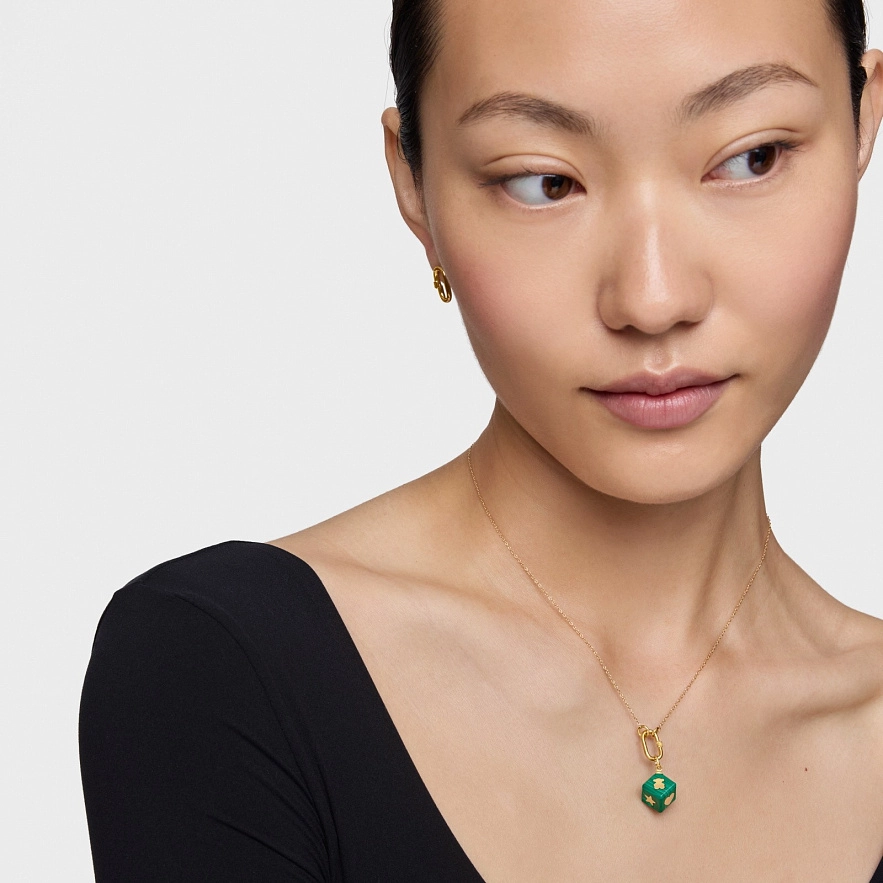 Кулон TOUS Cube з мотивами з жовтого золота 14 карат та малахіту у формі куба. Розмір кулона: 10 мм. Цей виріб не включає в себе ланцюжок.