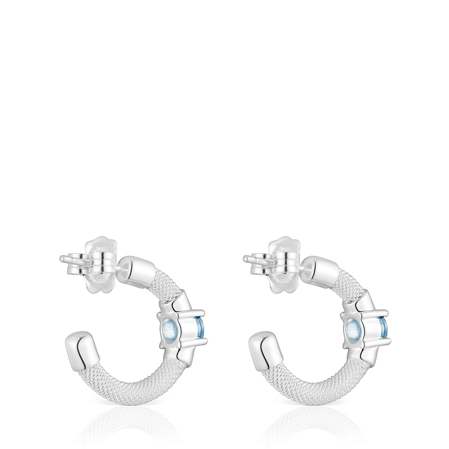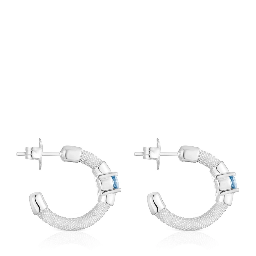 Сережки TOUS Mesh LGG зі срібла 925 проби та лабораторно вирощеного синього шпінелю. Розмір сережок: 18 мм. Виріб створений з лабораторно вирощених дорогоцінних каменів.