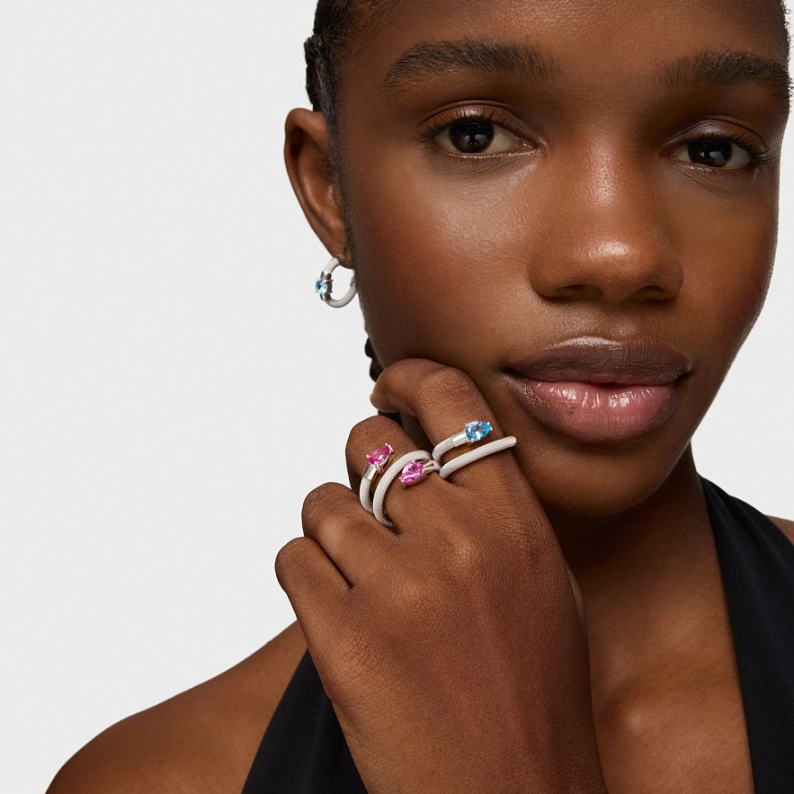 Каблучка TOUS Mesh LGG зі срібла 925 проби та лабораторно вирощеним синім шпінелем у вигляді спіралі. Виріб створено з лабораторно вирощених дорогоцінних каменів.