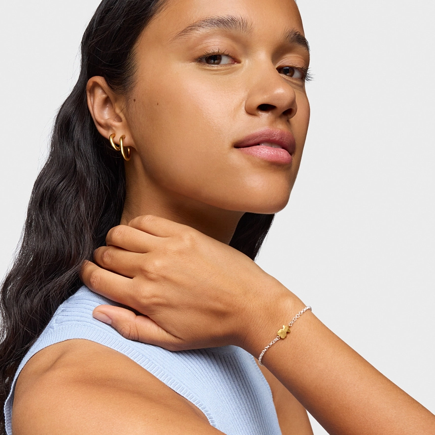 Браслет TOUS Icon Metal зі срібла 925 проби з покриттям Vermeil . Розмір ведмедика: 5 мм. Довжина браслета: 17,5 см. Застібка-лобстер.