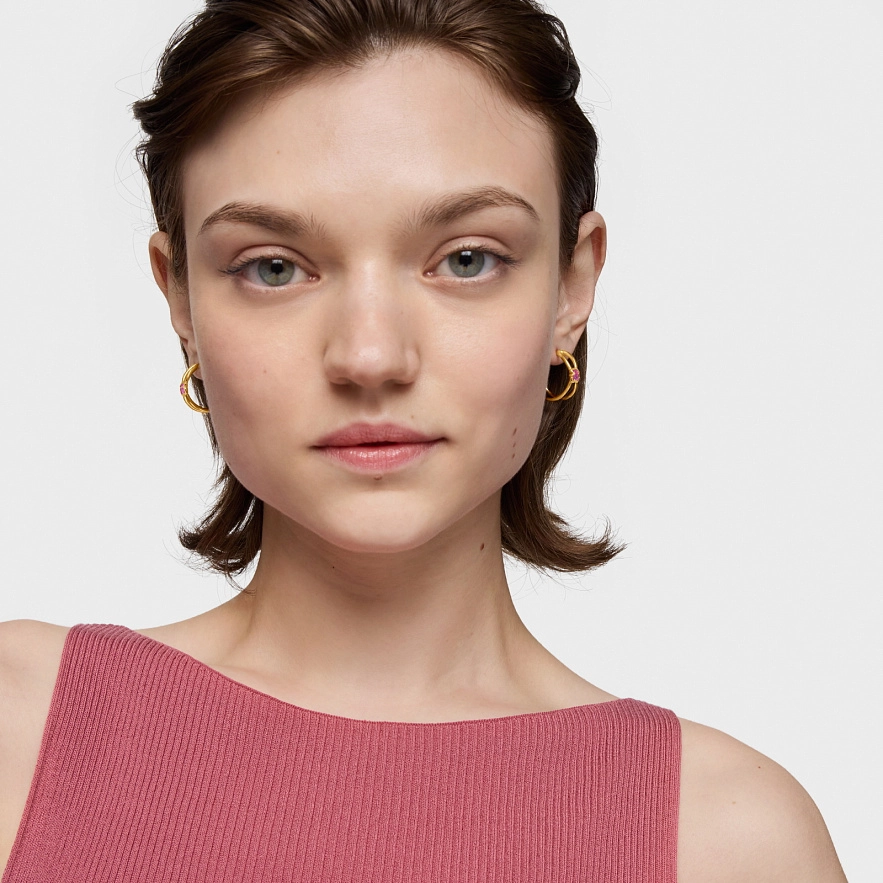 Сережки TOUS Icon Color LGG зі срібла 925 проби з покриттям Vermeil та лабораторно вирощеним рубіном у формі ведмедика. Розмір ведмедика: 5 мм. Розмір сережок: 20 мм. Застібка-пусет. Виріб створений з лабораторно вирощеним дорогоцінним каменем.