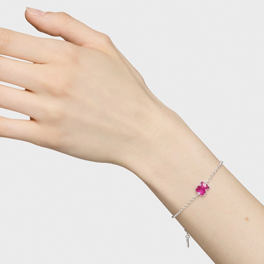 Браслет TOUS Icon Color LGG зі срібла 925 проби з огранованим рубіном у формі ведмедика, вирощеним у лабораторії. Розмір ведмедика: 10 мм. Довжина браслета: 17 см. Застібка-лобстер. Виріб створений з лабораторно вирощеним дорогоцінним каменем.