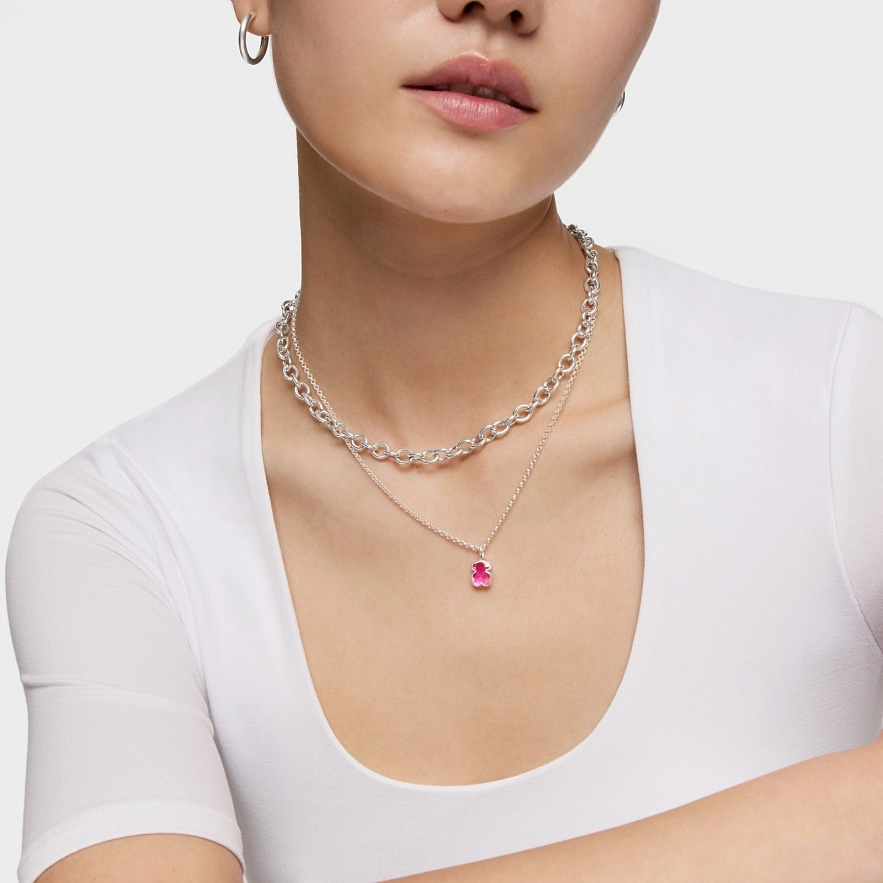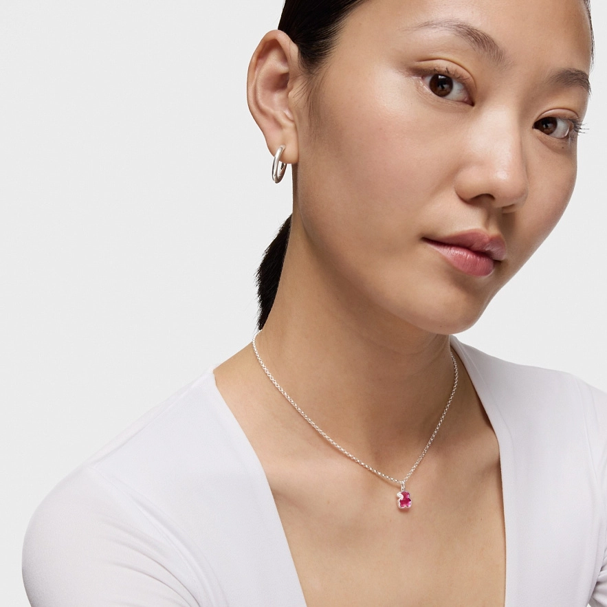 Намисто TOUS Icon Color LGG зі срібла 925 проби з огранованим рубіном у формі ведмедика, вирощеним у лабораторії. Розмір ведмедика: 10 мм. Довжина намиста: 45 см. Застібка-лобстер. Виріб створений з лабораторно вирощеним дорогоцінним каменем.
