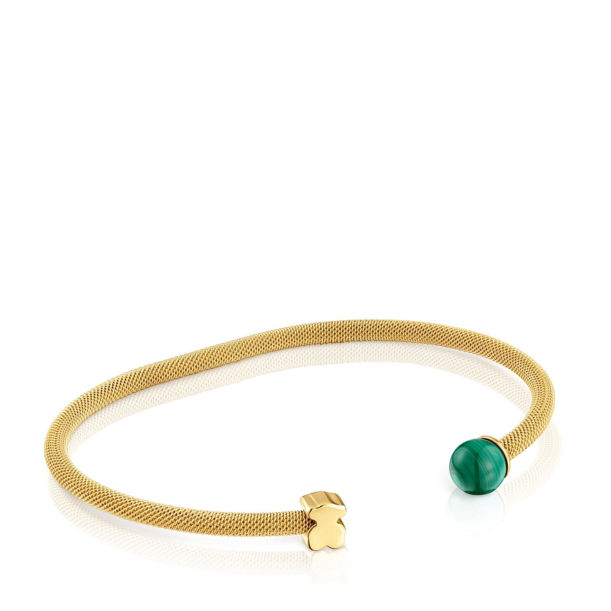 Браслет TOUS Icon Mesh зі сталі з мотивом ведмедика зі срібла 925 проби та кулькою з малахіту. Розмір мотиву: 6 мм. Товщина браслета: 2,75 мм.