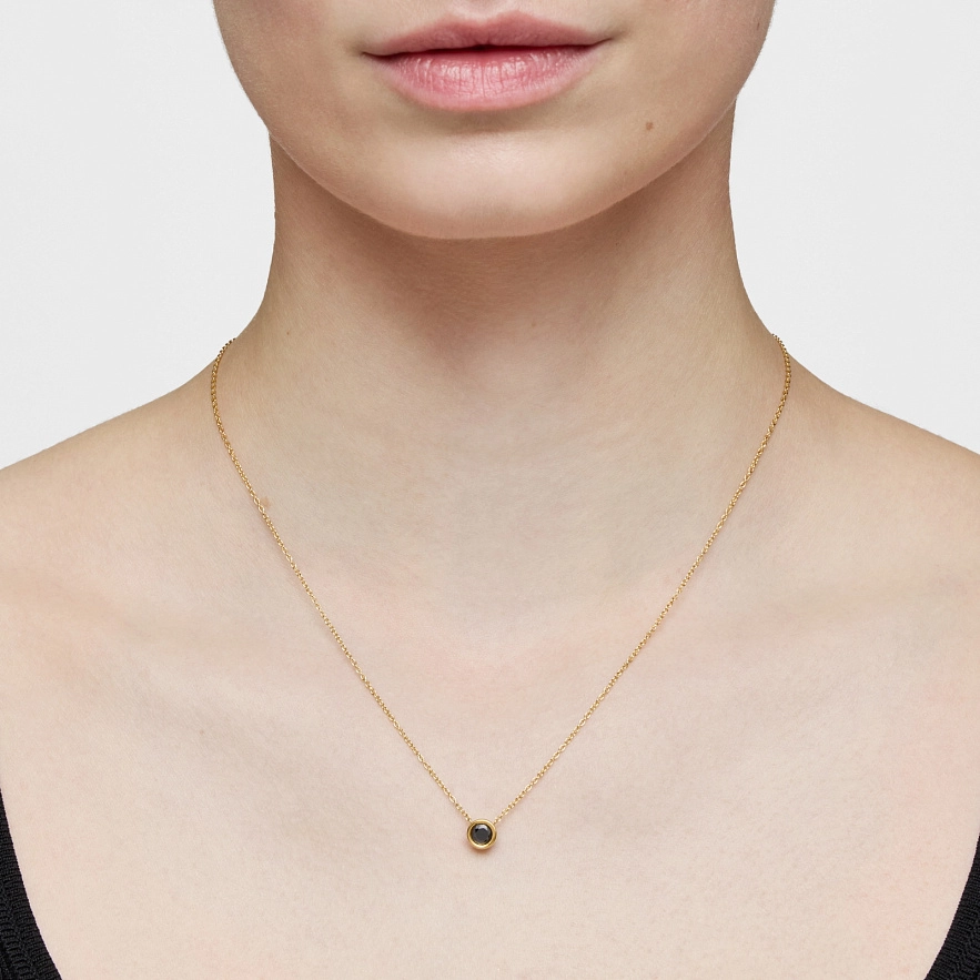 Намисто TOUS Line зі срібла 925 проби з покриттям Vermeil та фацетованим круглим чорним шпінелем. Довжина намиста: 45 см. Застібка-пружина.