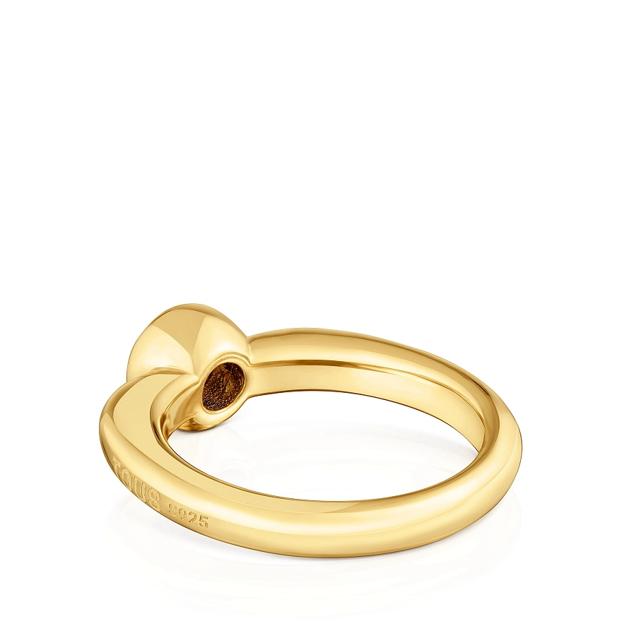 Каблучка TOUS Line зі срібла 925 проби з покриттям Vermeil та фацетованим круглим чорним шпінелем.