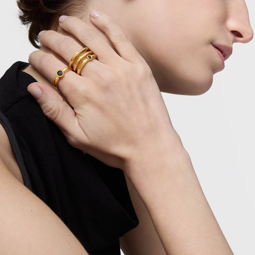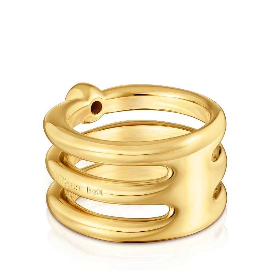 Каблучка TOUS Line зі срібла 925 проби з покриттям Vermeil та фацетованим круглим чорним шпінелем.
