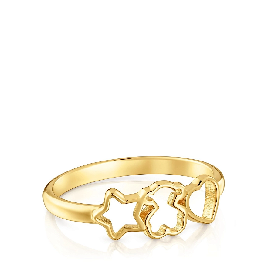 Каблучка TOUS Motivos зі срібла 925 проби з покриттям Vermeil з мотивами ведмедика, серця та зірки.