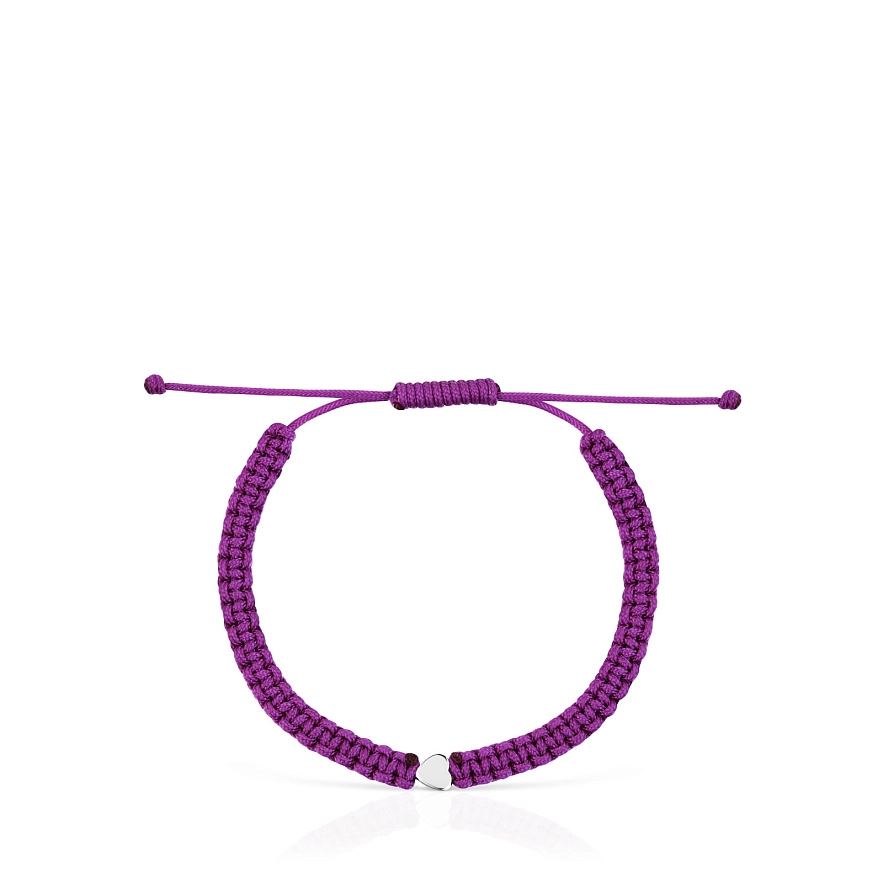 Браслет TOUS Motifs зі срібла 925 проби та мотивом серця і ліловим нейлоном. Довжина браслета: 17 см. Застібка-слайдер.