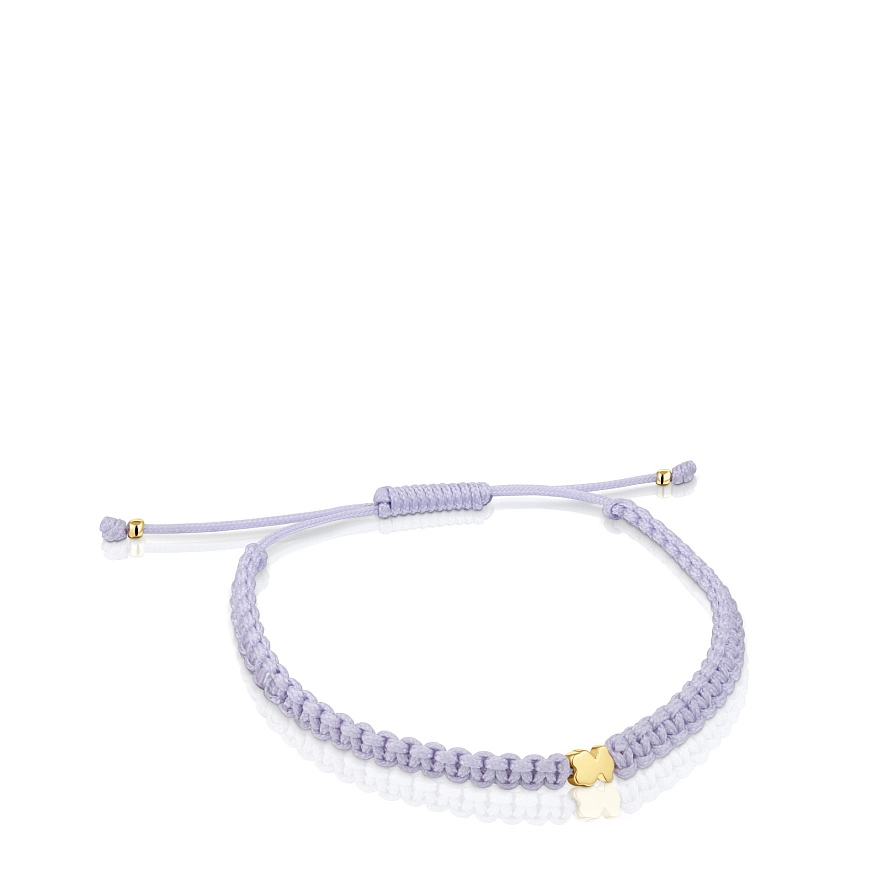 Браслет TOUS Motifs зі срібла 925 проби з покриттям Vermeil та мотивом ведмедика,і ліловим нейлоном. Довжина браслета: 17 см. Застібка-слайдер.