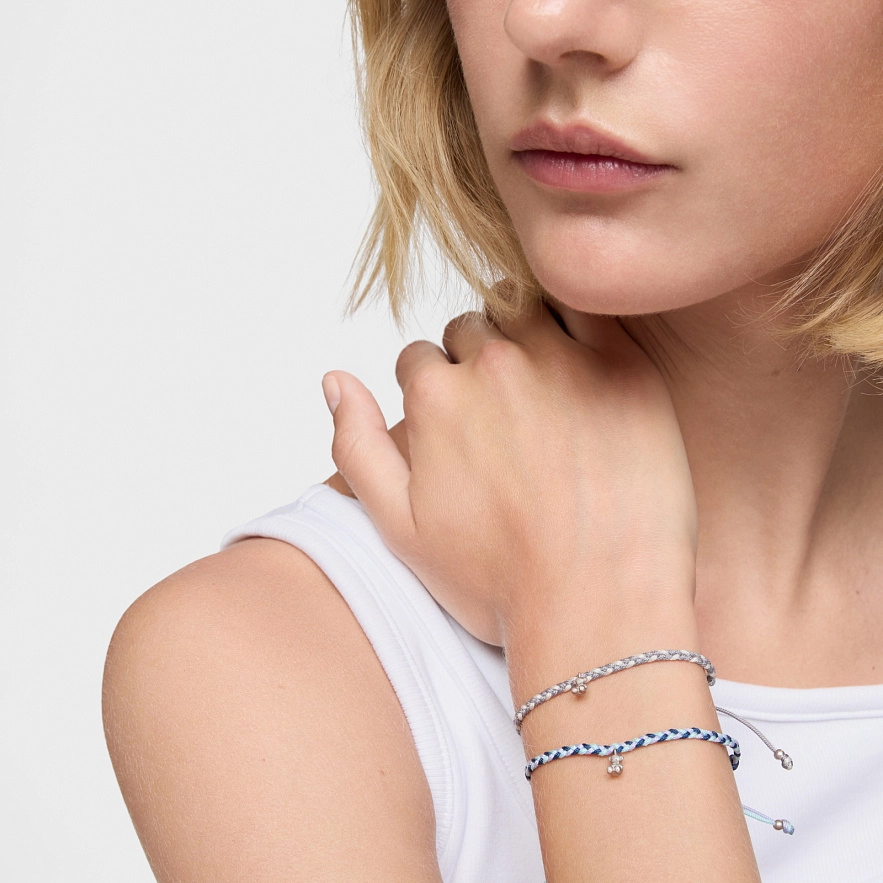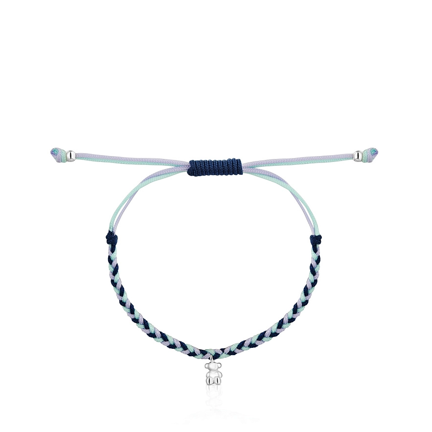 Браслет TOUS Motifs зі срібла 925 проби та мотивом ведмедика і синім нейлоном. Довжина браслета: 17 см. Застібка-слайдер.