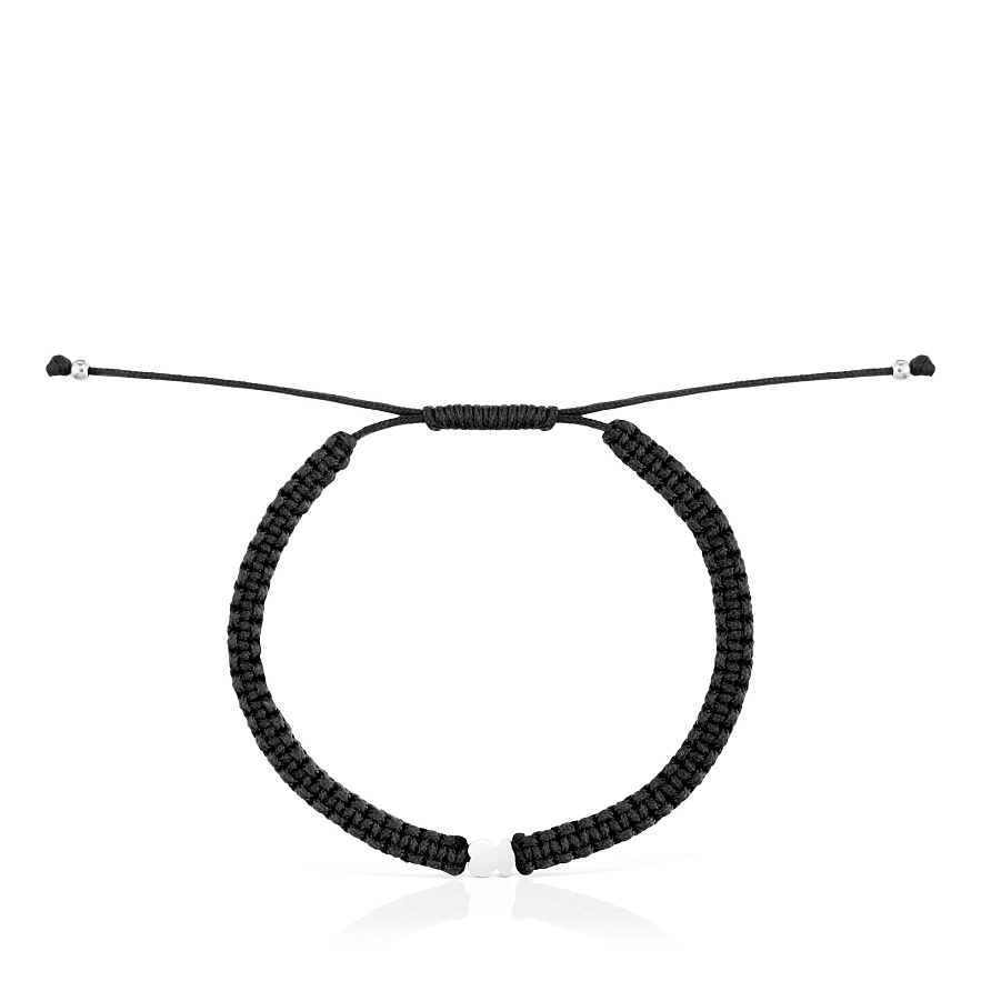Браслет TOUS Motifs зі срібла 925 проби та мотивом ведмедика і чорного нейлону. Довжина браслета: 17 см. Застібка-слайдер.