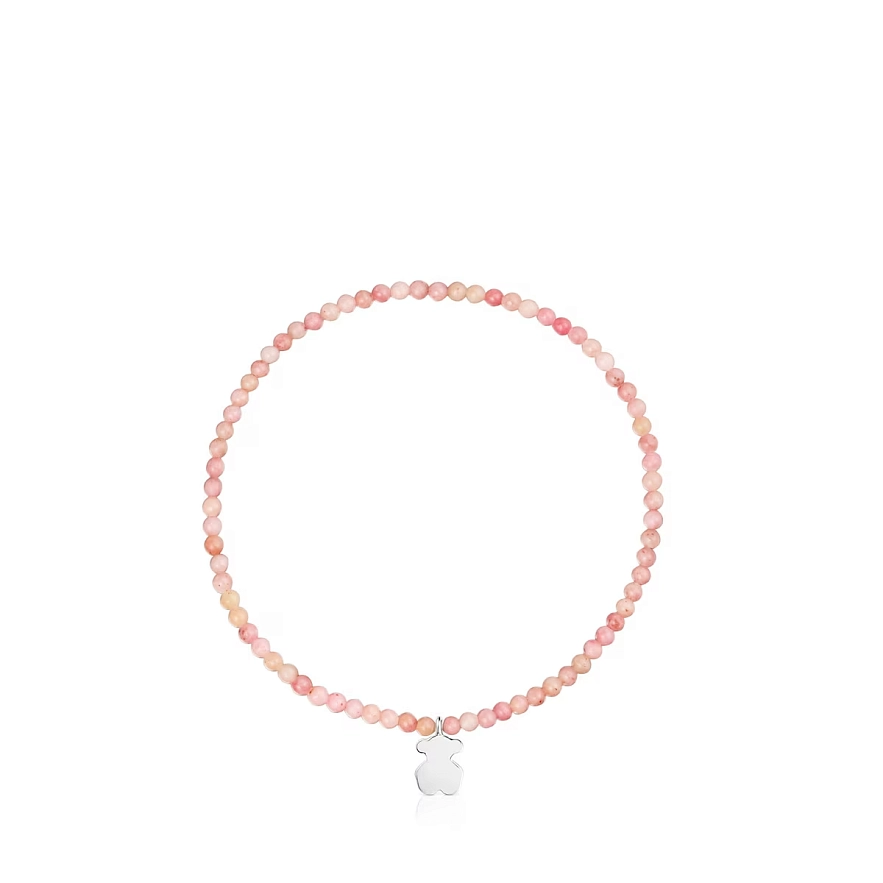 Браслет TOUS Motifs зі срібла 925 проби та ограненими кульками з рожевого опалу і мотивом ведмедика. Довжина браслета: 17 см.